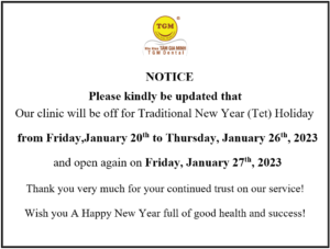 Our clinic will be off for Traditional New Year (Tet) Holiday 2023